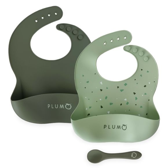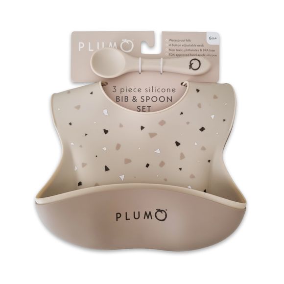 Plum Silicone Bib & Spoon Set 3Pc Berry/Blush