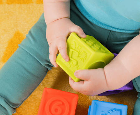 Gift suggestions: activity centre, stacking tower or blocks, shape sorter, problem-solving toys or a cuddly comforter.