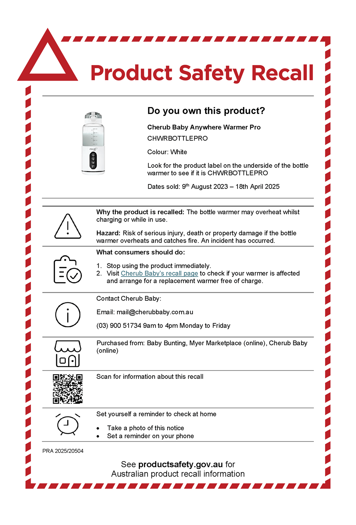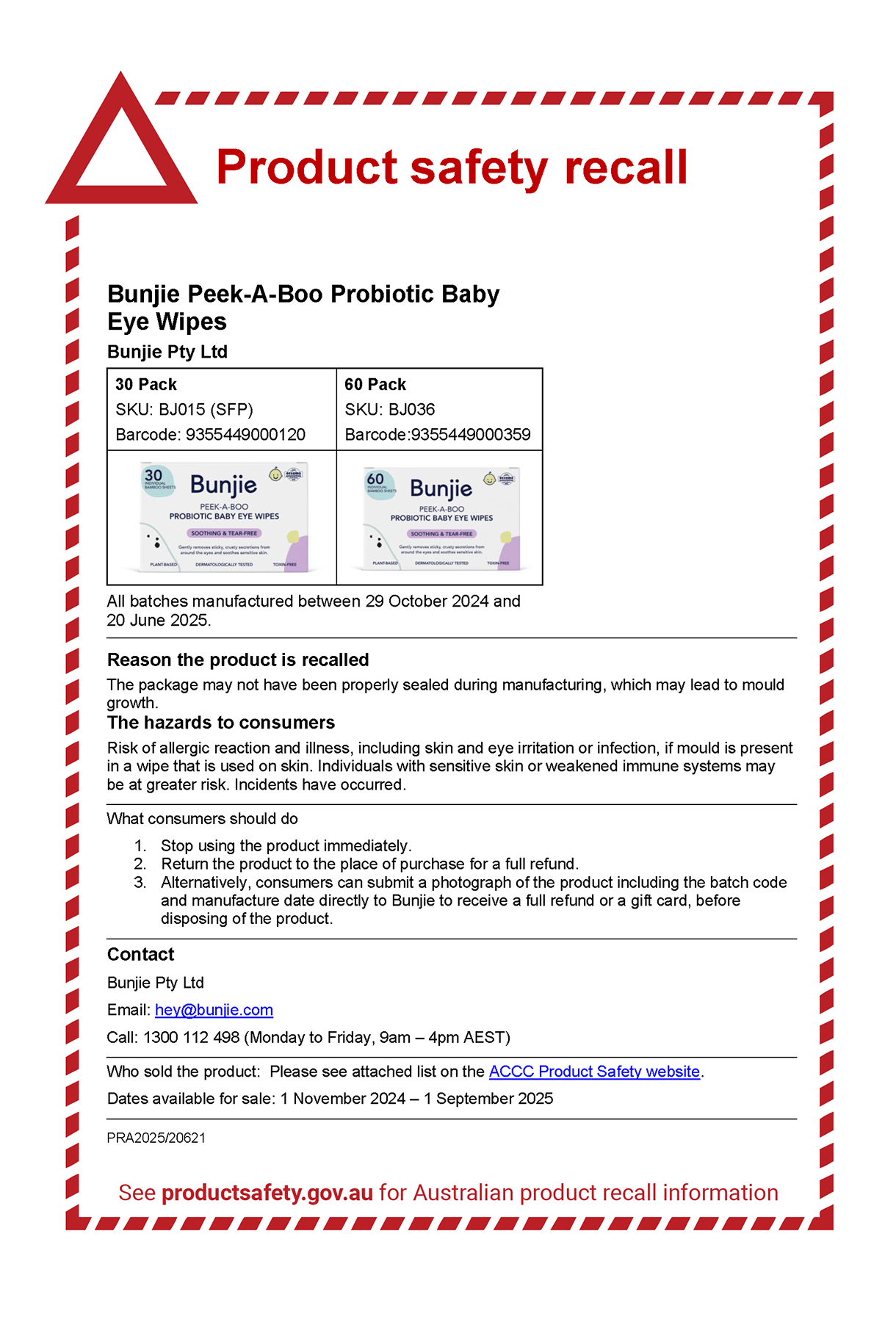 It is our goal that every product you purchase is safe to use as intended and free from defects. We work closely with our suppliers to ensure products identified as being unsafe or defective are listed here and withdrawn from sale immediately. For more information or to stay across all ACCC recalls, please visit their website.