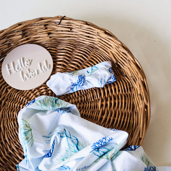 I'm new hereAdd to wishlist Online Only Bambini Prams Underwater Worlds Reef Jersey Wrap & Topknot Set $54.99Marketplace